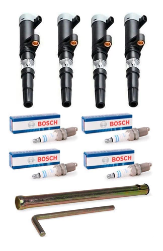 Juego de 4 bobinas Magal + 4 bujías Bosch + Llave saca Bujias (16mm) para Motores Renault 1.6 16v K4M y 2.0 16v F4R